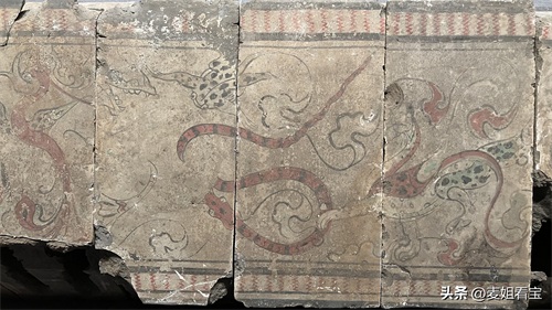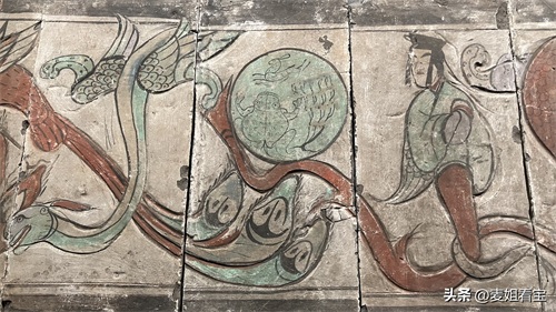 这一部分展出的是河南地区从两汉到民国,一共18组65幅185平方米的古代壁画。题材从上古神话、孝子故事、飞天伎乐等等应有尽有。