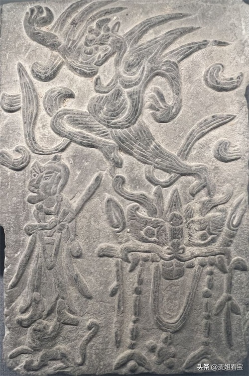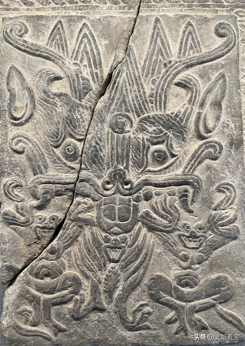 这座西汉中期的单棺单室墓,建筑材料是特制的空心砖。墓门左右立柱是模印柿蒂、菱形和龙纹图案的柱形空心砖。门楣正中是代表祥瑞的浮雕鹿头,门额由对称的空心砖拼合而成,图案有朱雀、扶桑树、虎、鹤等。