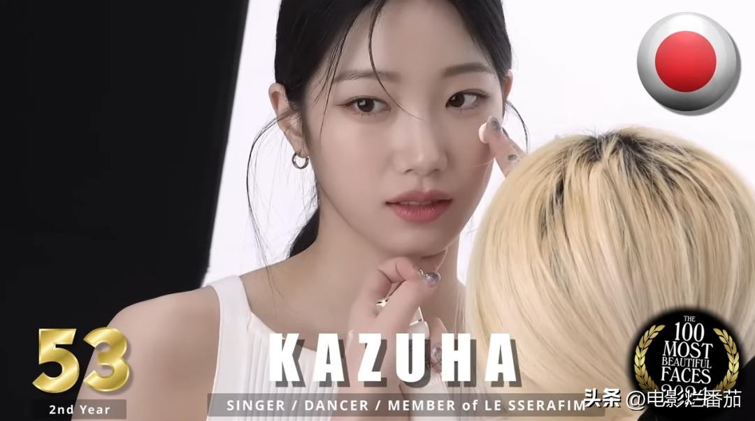 日本爱豆,韩国女子演唱组合LE SSERAFIM成员中村一叶,则排名第53位。