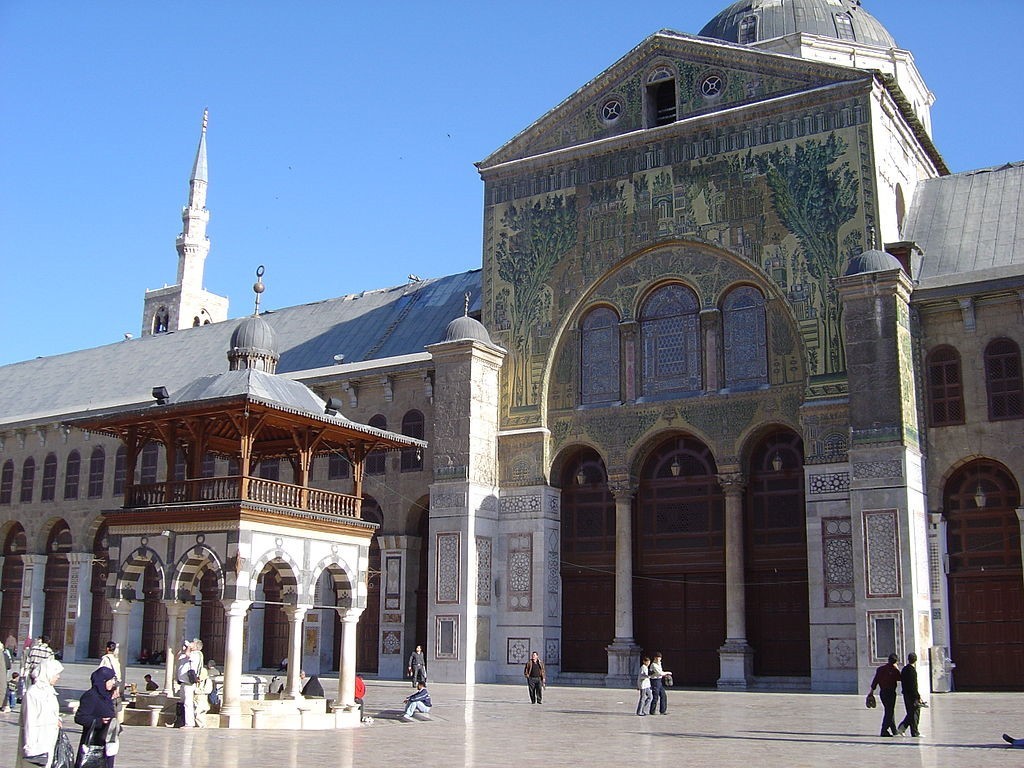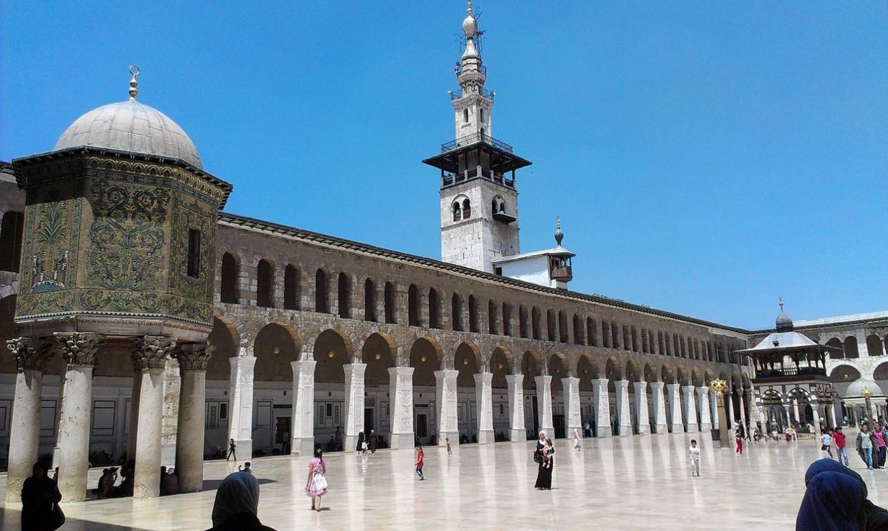 阿拉伯军队636年破城而入,把罗马人赶回了欧洲老家。在这之后的一个世纪内,当政的瓦立德哈里发命令在原圣约翰教堂地基上建造一座以后永远不会被超越的宏大清真寺,这便是倭马亚大清真寺的由来。倭马亚大清真寺建成之后﹐一千多年内都安然无恙,但在1893年遭到一场大火,火灾之后奥斯曼帝国拨款重修主殿,精雕细刻,保持原来的庄严豪华风貌。