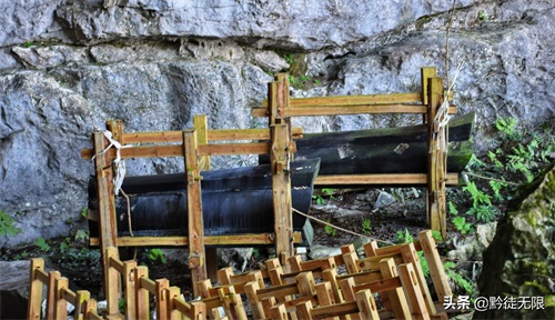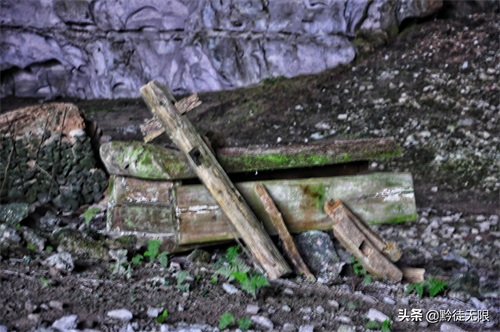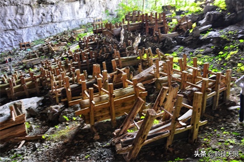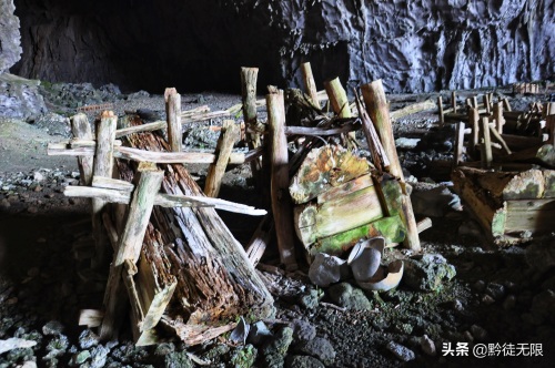 溶洞内一条简易的小道贯穿其中,左边是放置是一些年代较为久远的棺木,右边放置的是一些近代的棺木。