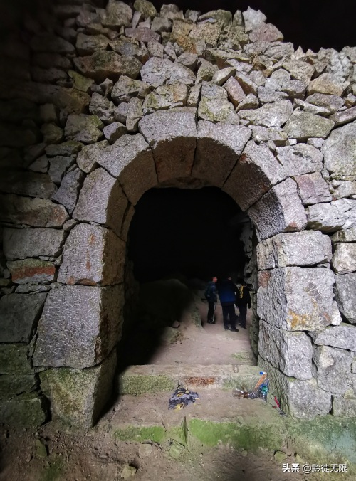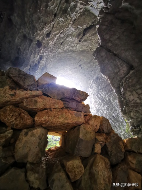 快到洞口,有一道石墙,石墙建有拱门、观察孔。洞内还有灶台的遗迹,类推种种,这儿应该是一个古营盘。