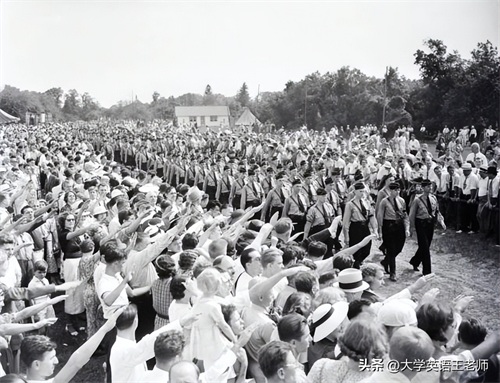 自1929年开始的大萧条,让美国1/4的就业人口成了无业游民。此前,有大量的德国人移民到了美国,德裔一度占到美国总人口的1/4。这些人原本是奔着美国梦来的,却被经济危机撞得一脸晦气。反观德国,在希特勒的带领下,经济快速崛起,于是这些德国移民中,便有人开始迷恋起了希特勒的纳粹主义。