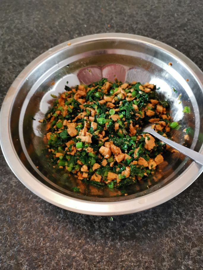 今天买回了几个青萝卜,不但萝卜脆爽,就连上面的萝卜樱子也是非常的新鲜,于是就用萝卜樱子和豆腐做了素馅包子,再熬上一砂锅小米粥,这样今天的晚饭就齐了!