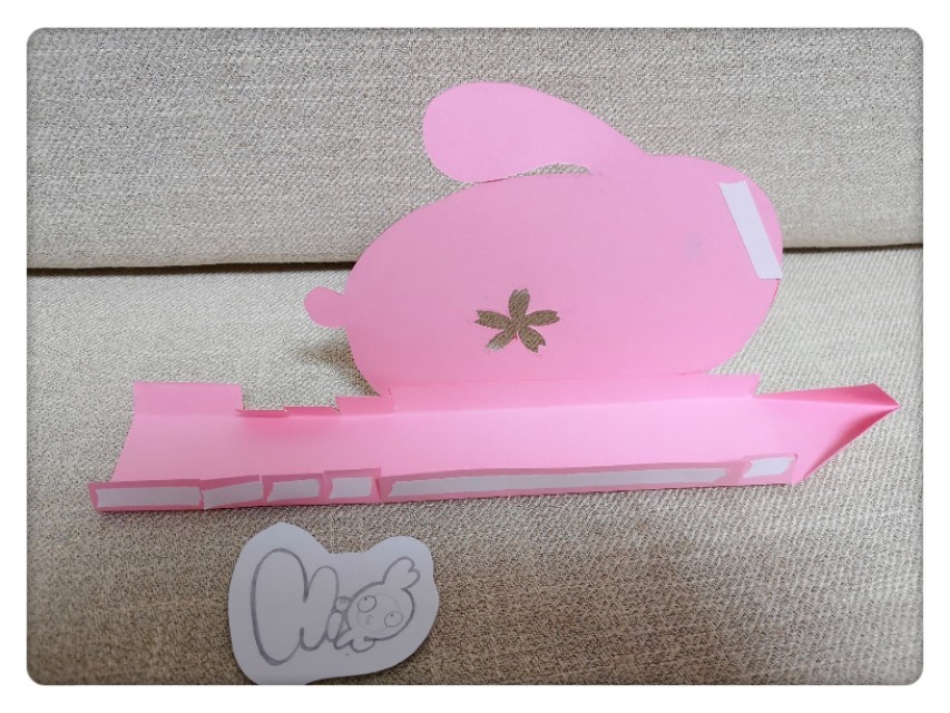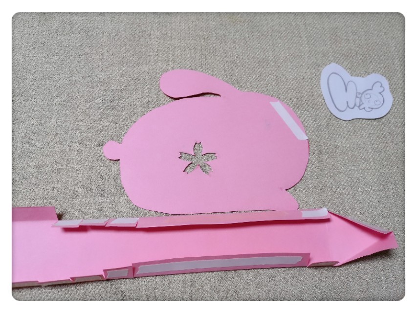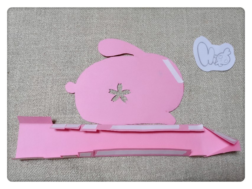 13.用打孔器打四个孔,用海绵纸画出鼻子,剪下贴上。如图。