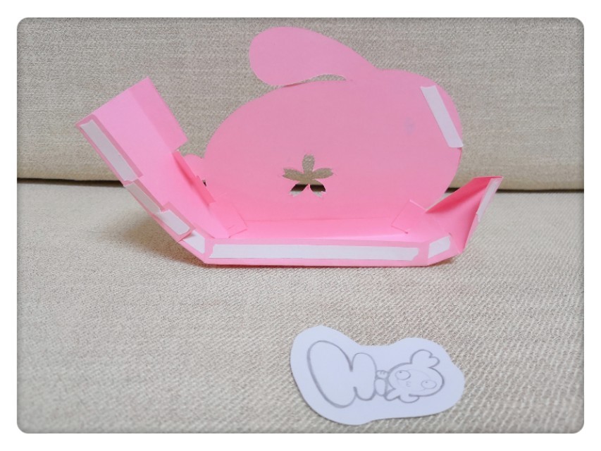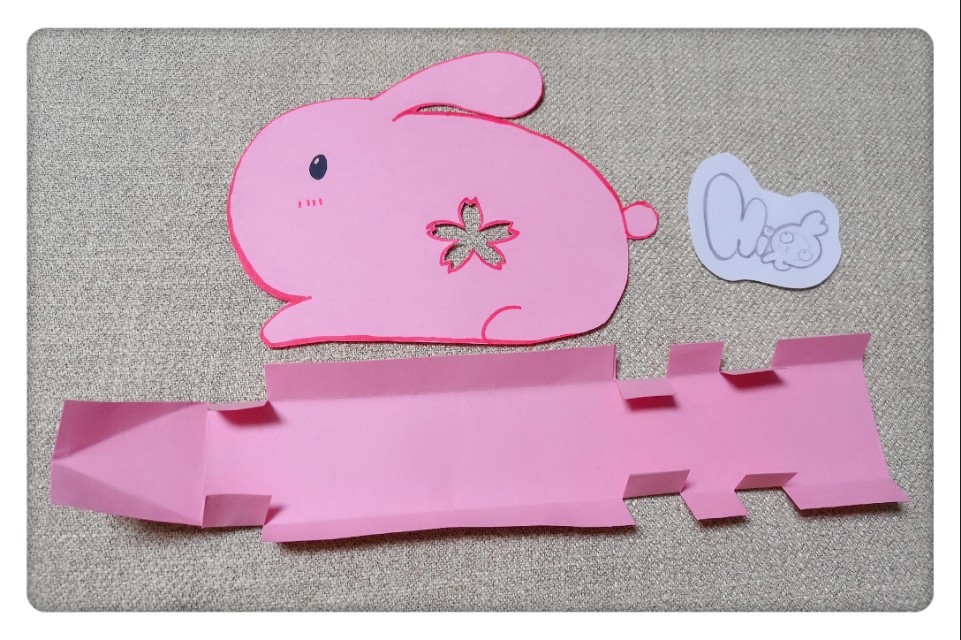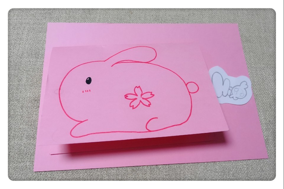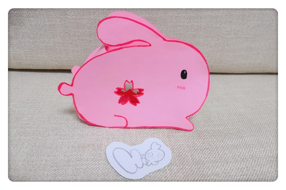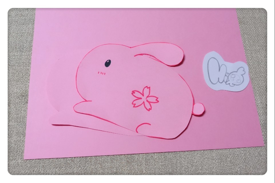 1.在卡纸上用彩笔画出一只有纸张一半大小的兔子。