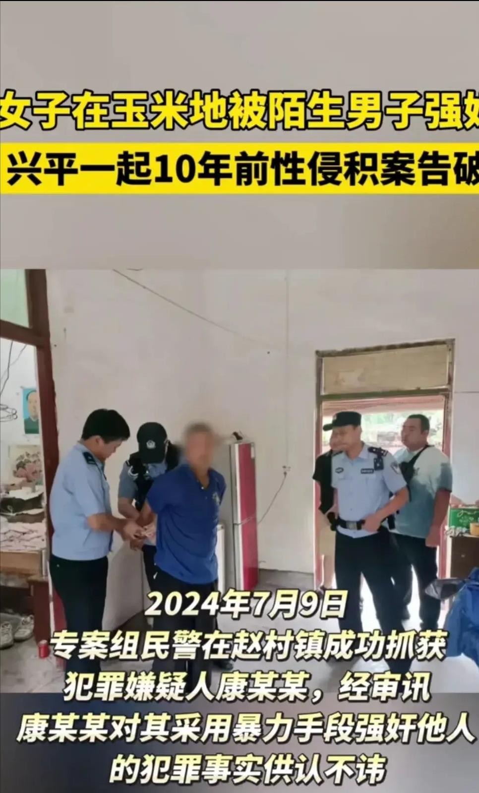 女子十年前在玉米地被陌生男子性侵,今年破案,邻村小伙干的!