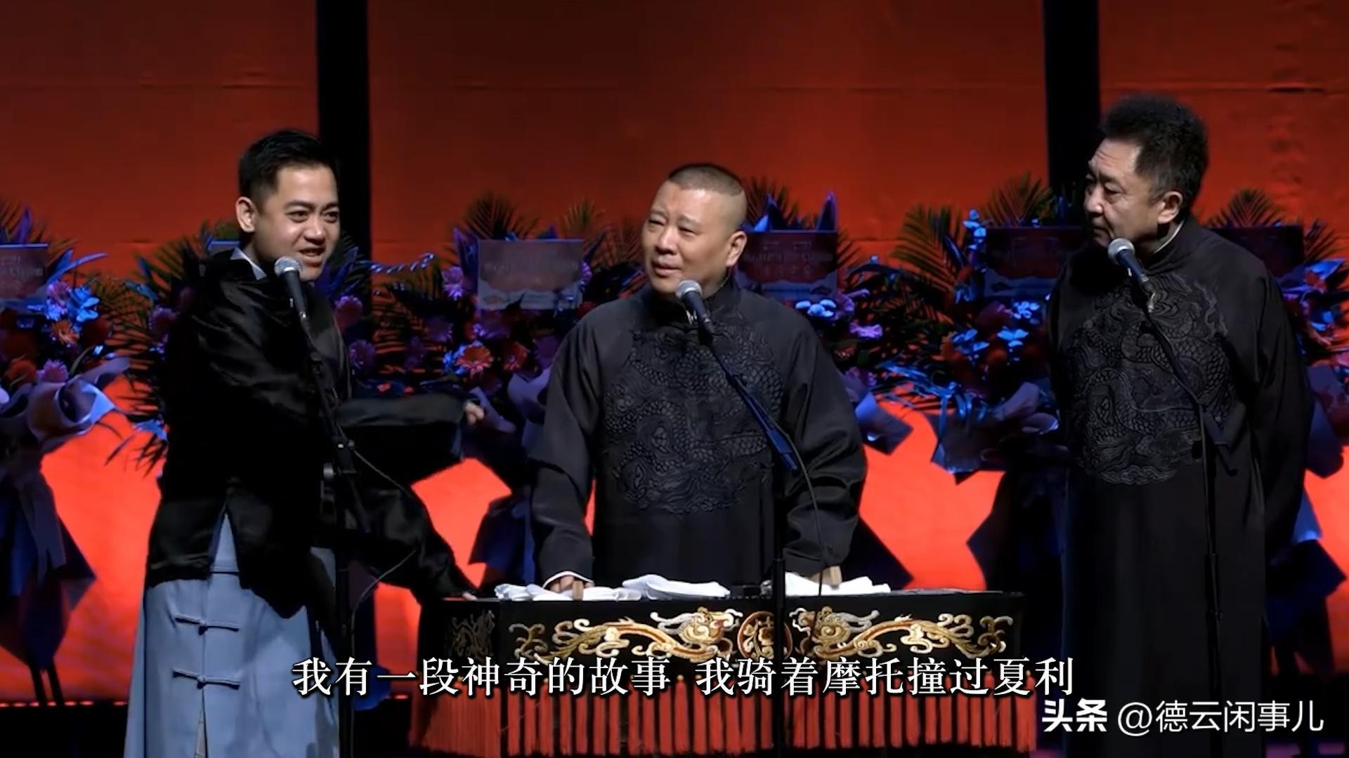 相声专场返场时,郭德纲喊过徒弟孔云龙,告诉他自己对他的期望,希望他别死在自己前面,只要安全看着师父出殡,就算成功。这可不是郭德纲为了徒弟降低标准,实在是三哥孔云龙太能惹祸了,让郭德纲对他的标准只能一降再降。