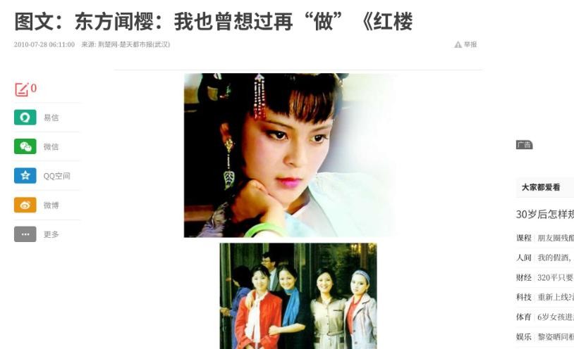 《红楼梦》的播出,让东方闻樱迅速成了人人皆知的明星,她没有被突然而来的名声和利益冲昏头,一直保持着清醒。