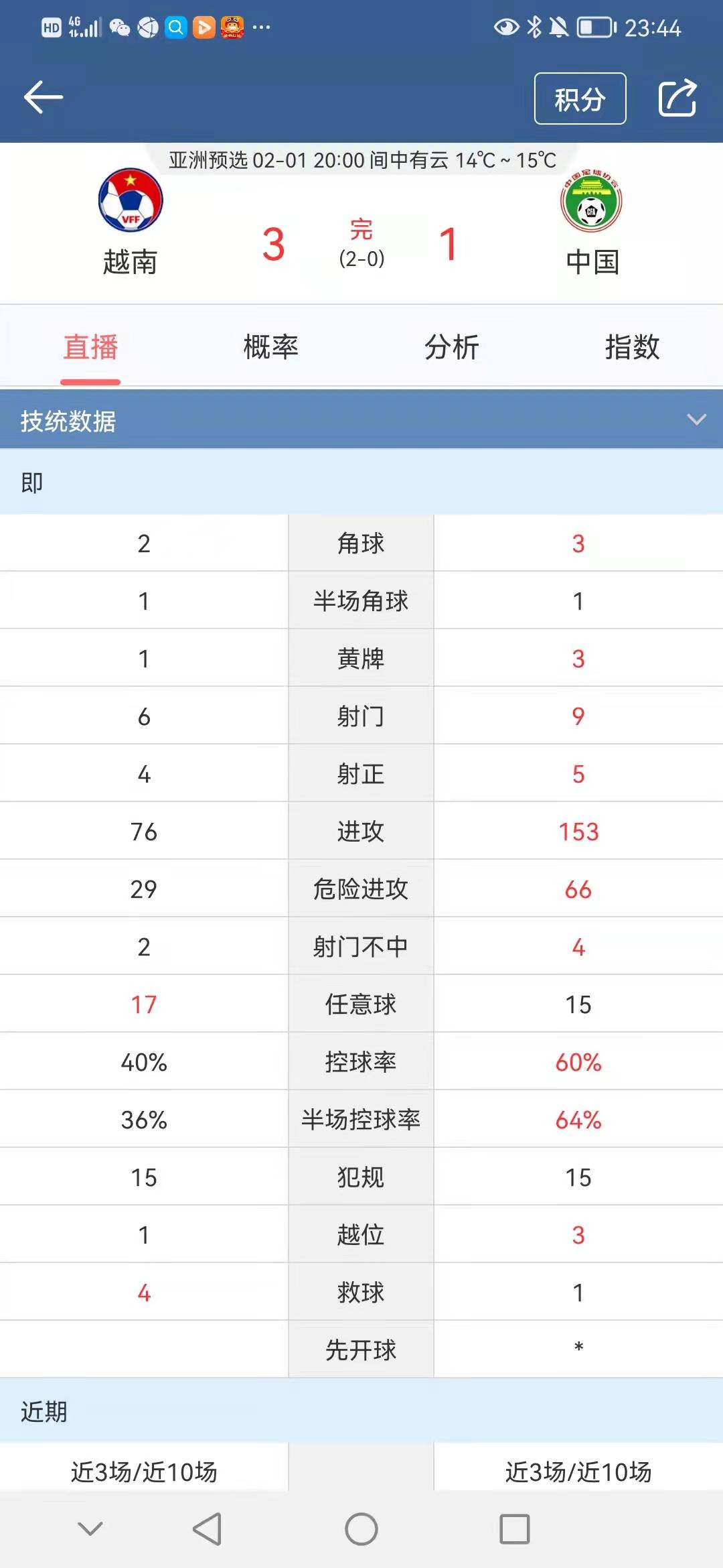 二、中国男足和越南男足的比赛背景情况: