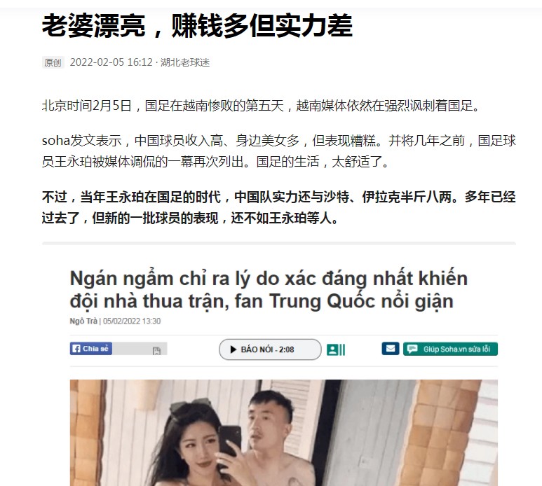 越南评价输球后的中国男足,丢人!