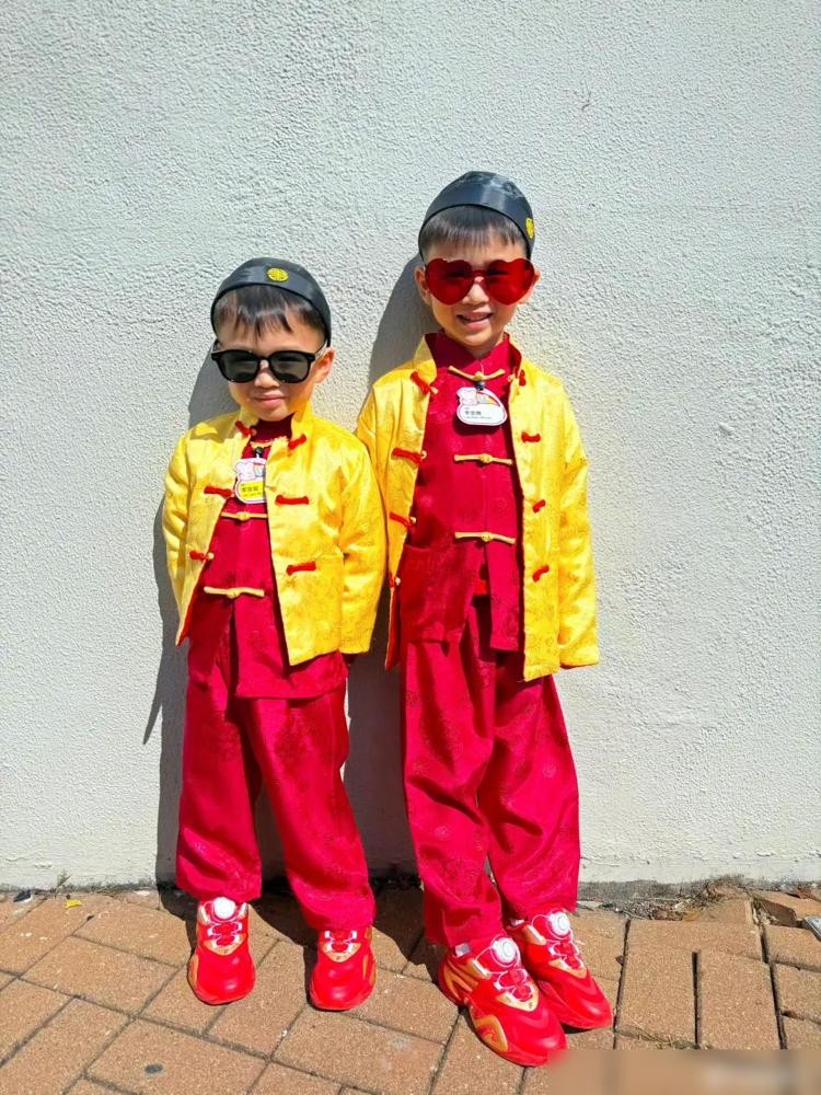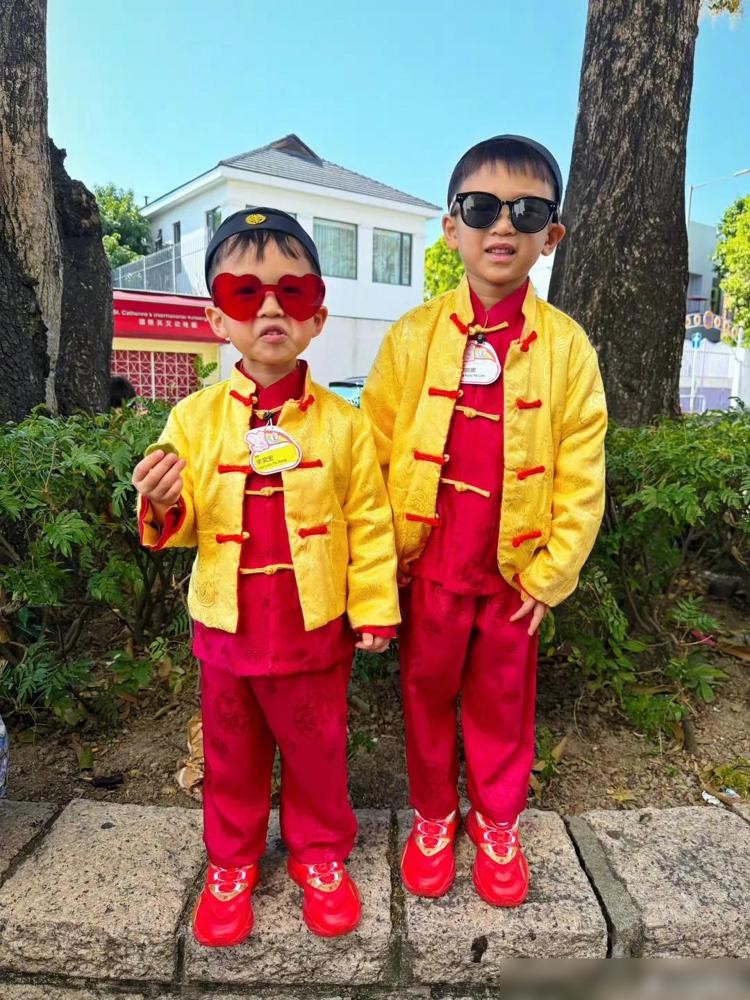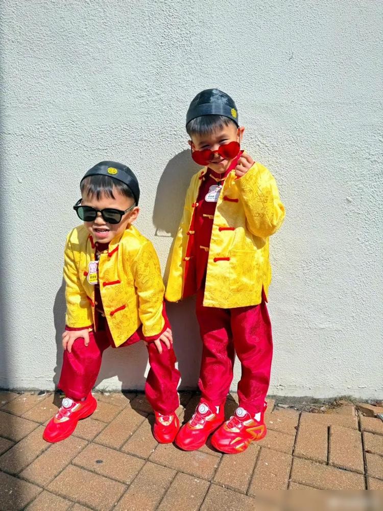 在胡杏儿分享的照片中,三个儿子身着新年唐装,这不仅是视觉上的盛宴,更是文化传承的重要体现。春节是中国最重要的传统节日,而新年唐装则是这个节日的标志之一。通过这样的传统服饰,胡杏儿的家庭在节日中增添了浓厚的文化气息,也加强了家庭成员之间的认同感与归属感。