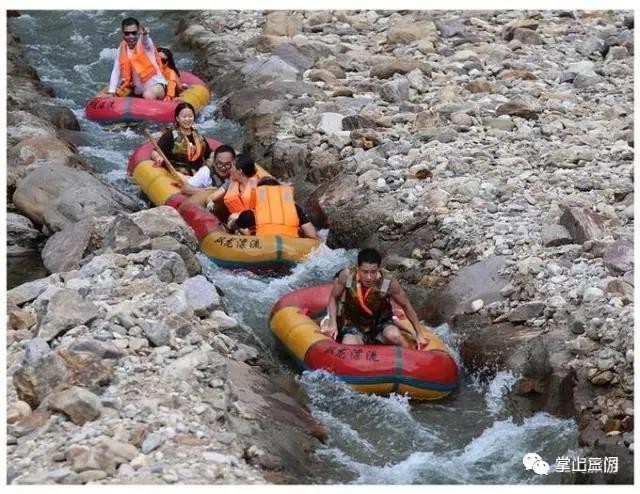 双龙溪漂流第一期全长3.2公里,沿岸自然风景秀丽原始,溪中鱼虾成群,悠然迷人,激流刺激,平滩悠闲自得,适合小朋友。