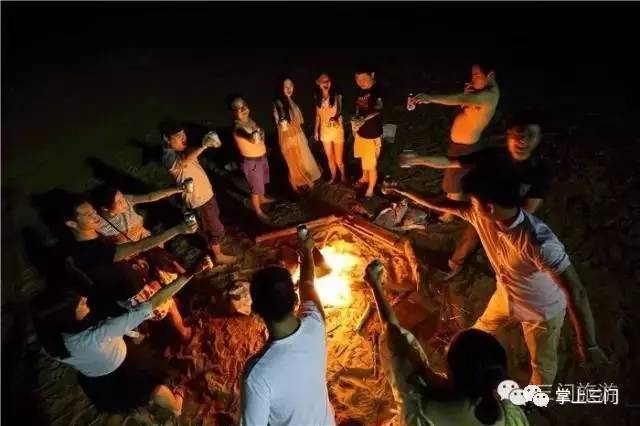三门夏日的篝火晚会你可不要错过了,火光影影绰绰,围着篝火烧烤、唱歌,人生还能更惬意一点么?