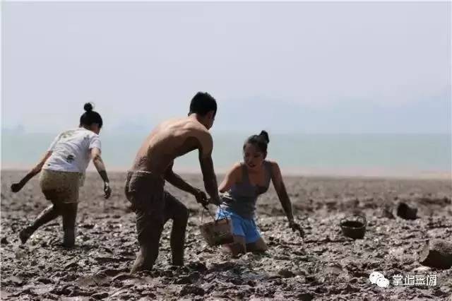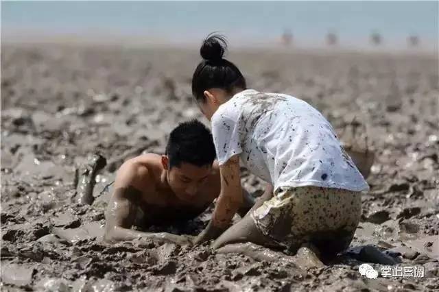 在蛇蟠岛滑泥公园的滩涂地中,全身抹上泥,杀菌防晒,骑上木泥马,还可以在滩涂里淘些小海鲜。