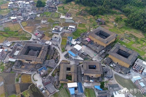 空中鸟瞰新罗适中土楼群,蔚为壮观。(汤浩宇摄)