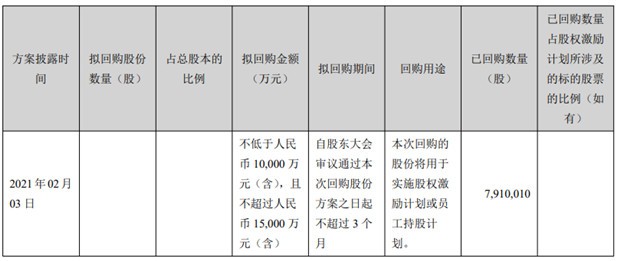 回购方案称,本次回购的股份将用于实施股权激励计划或员工持股计划;公司如未能在股份回购实施完成之后36个月内使用完毕已回购股份,尚未使用的已回购股份将予以注销。