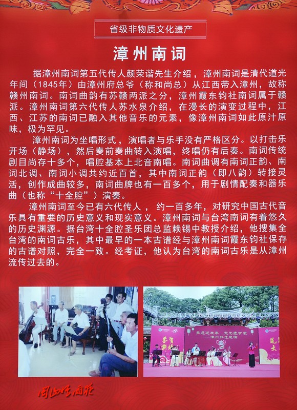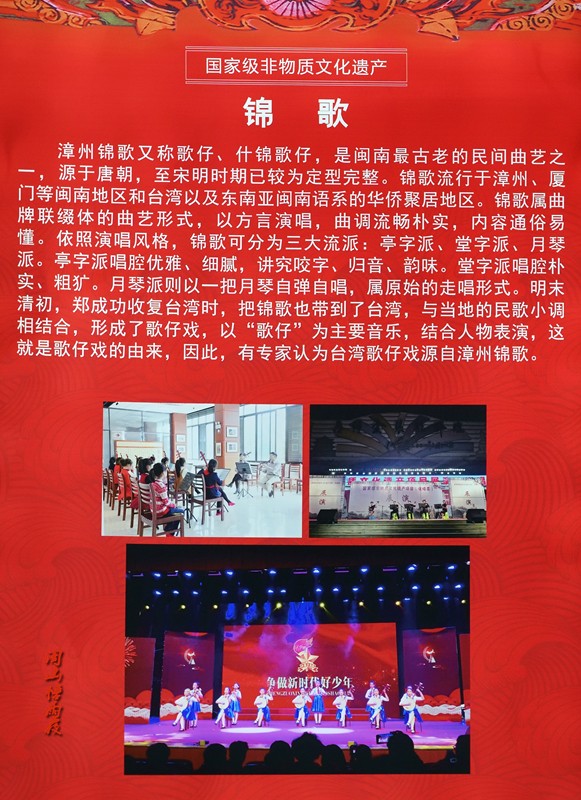 “漳州锦歌”(国家级),闽南最古老的民间曲艺,源于唐朝,与歌仔戏有渊源关系。