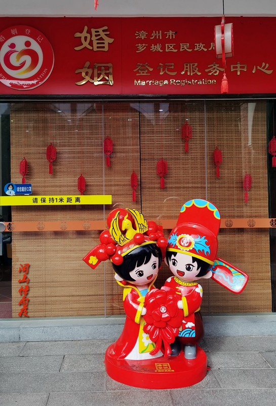 路旁发现“漳州芗城区婚姻服务中心”,这对“阿福”很可爱呀。