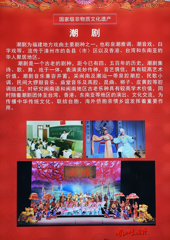 国家级非物质文化遗产——潮剧,潮州地区与闽南语言、风俗相同,地理相通,故潮剧流行闽南及潮汕一带。