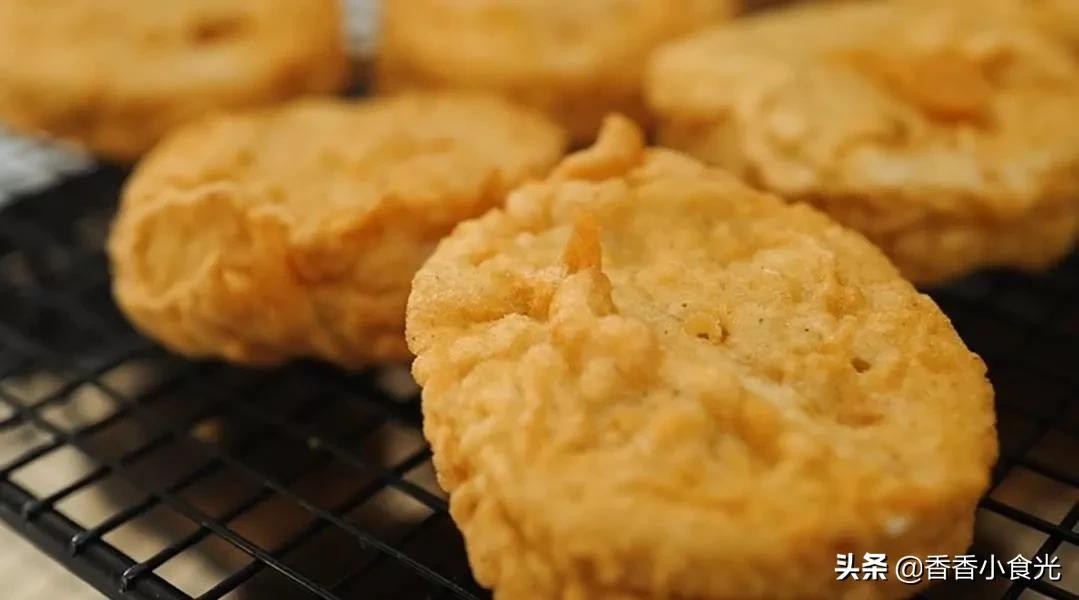 7.再将油温烧热至六成热,复炸至金黄色时捞起