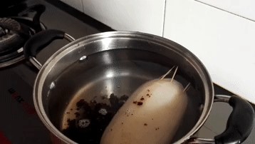 8、大火煮开,改小火慢煮一至两个小时,期间多翻几次面