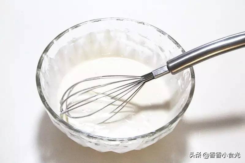 7、直到搅拌成稀稠适中的面糊,不能太稀也不能太稠,用虎口能挤出成型的圆球形状就可以了;