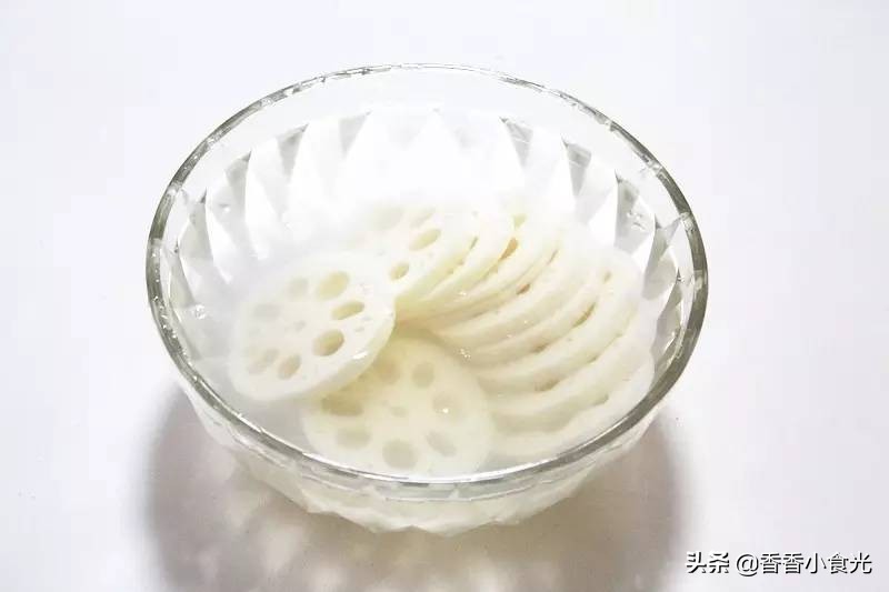 2、将切好的藕片泡入水中备用。(避免藕片氧化变黑)