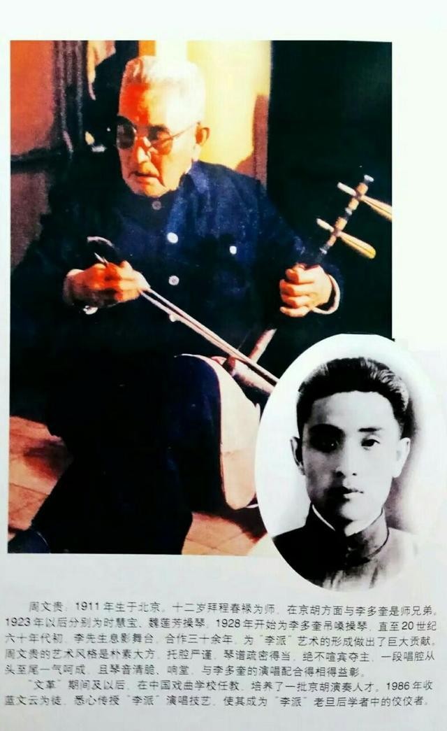 周文贵想必大家可能知道他是李多奎合作了一辈子的琴师了,而且和多爷也是师兄弟。为什么是师兄弟呢因为他们当年一起拜了陆彦庭(龚云甫的琴师)。