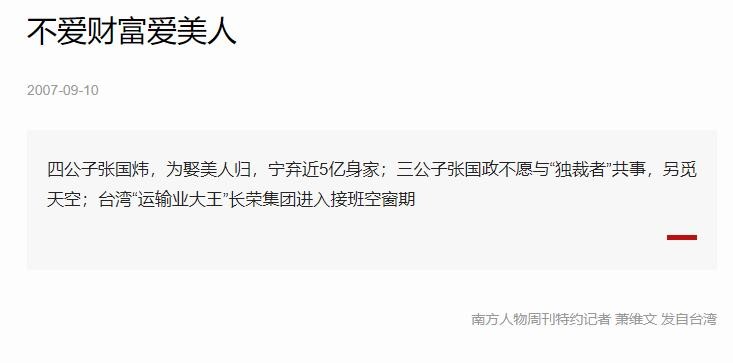 除了这件事外,还有一件事情曾经也轰动全网,那就是长荣集团的“皇太子”,不爱江山爱美人,为了空姐放弃20亿家产的举动。