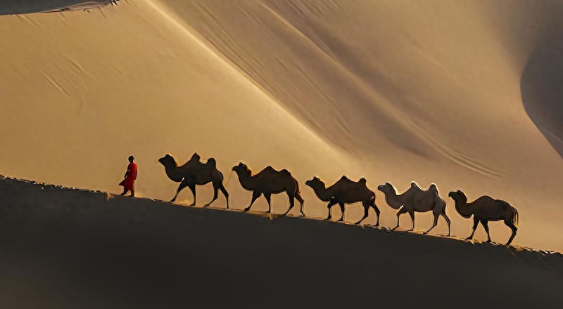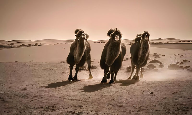 千百年来,智慧的阿拉善人头顶湛蓝天空,脚踏金色戈壁、沙漠,与骆驼“相依为命”,在悠远的历史岁月里,骆驼是阿拉善人最忠实的伙伴。