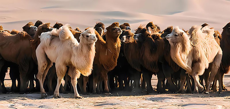 阿拉善双峰驼作为一个古老的原始品种,在进行过程中形成了许多独特的适应荒漠草原的生物学特征。