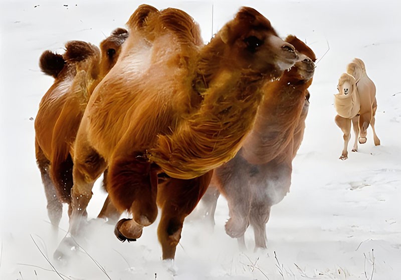 著名的曼德拉山岩画中,有关骆驼形象的生动刻画告诉世人,阿拉善也是双峰驼最早的驯化地之一。