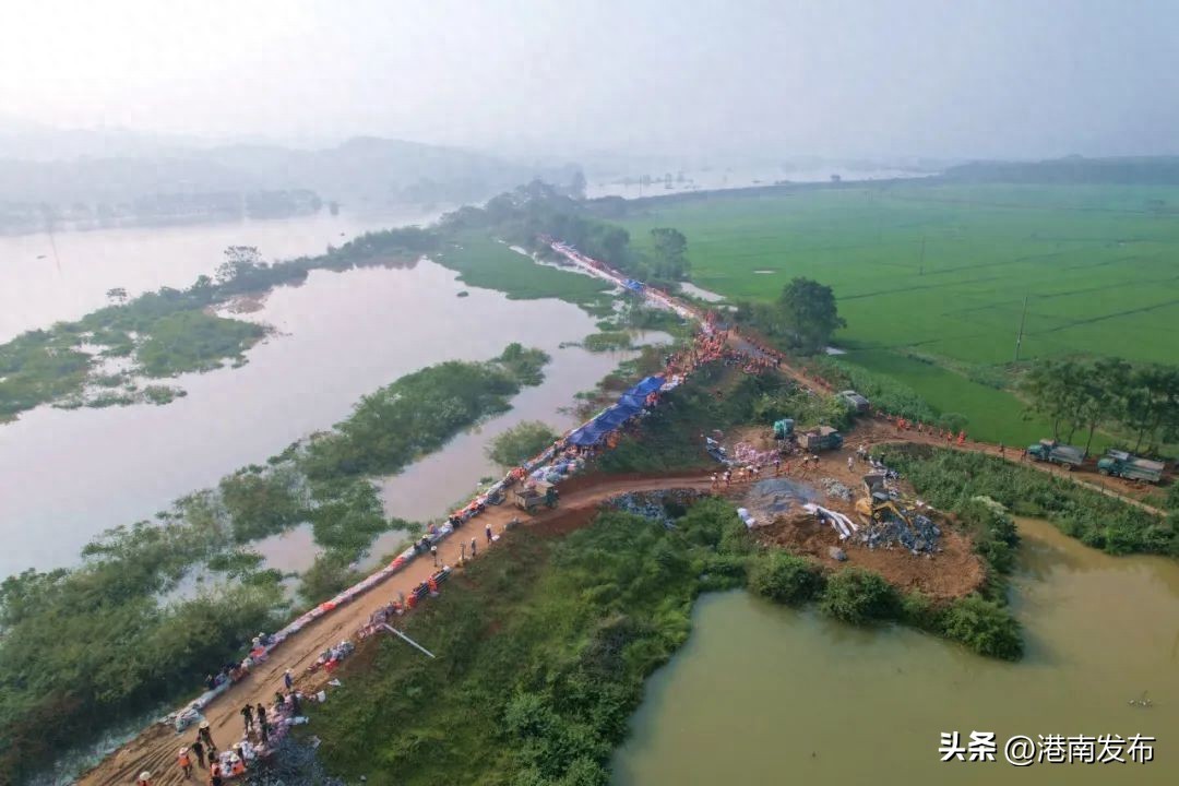 据了解,为应对此次洪峰过境,港南区防汛抗旱指挥部积极协调贵港市、桂平、平南、港北、覃塘多地消防、应急、民兵、蓝天、飞鹰、安能救援队等不同战线的抢险救援人员累计1250多人参与抢险救灾。在46位水利专家指导下(包括水利部、自治区水利厅、贵港市水利局、港南区水利局),840多人负责处置堤坝应急抢险,整个堤分为五个小组段,每个段分别由港南一名处级领导为组长组织防范工作;还组织部分区镇领导干部负责转移安置群众工作。紧急调拨编织袋10.3万只、彩条布41捆、沙石土约5000立方米;使用勾机48台次,后驱动车180台次;救生衣810件、铁锹700把、帐篷700顶、折叠凳200张、毛巾被650床、移动照明设备大小共300余盏(支)、一次性雨衣800件、警戒线200卷、合金钢丝网兜25个等物资,协调了3个取土点和供电局移动供电车等开展抢险救援。