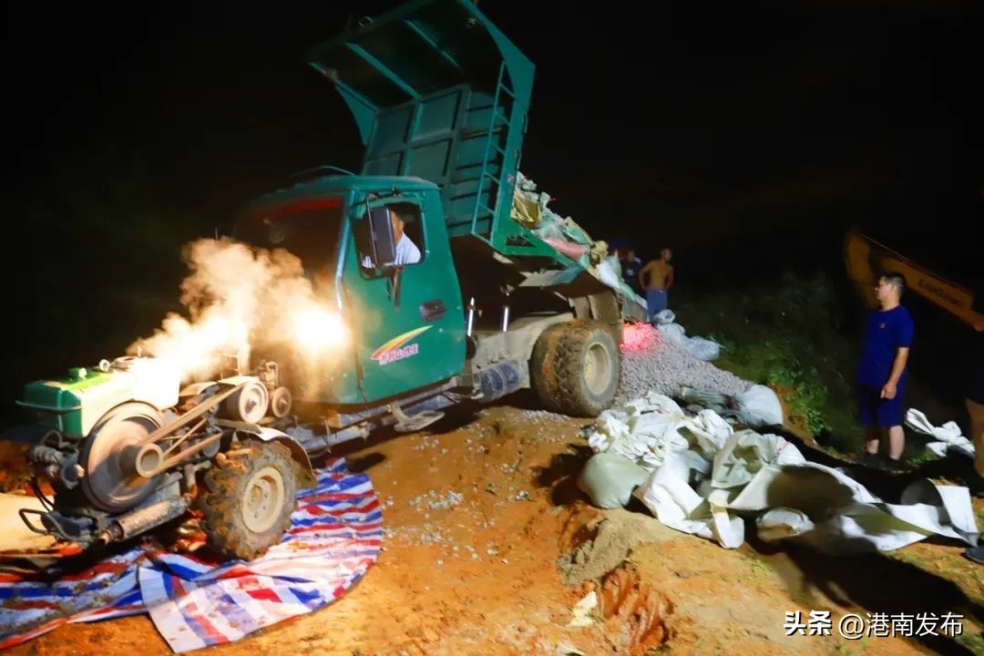 9月11日中午,第一时间赶到现场的领导和水利专家进行研判,确定行动方案。与此同时,贵港市、港南区应急救援队和瓦塘镇干部近130名工作人员立即行动起来,有序开展巡逻排查隐患点、搬运物资、堤坝应急抢险加固等工作。