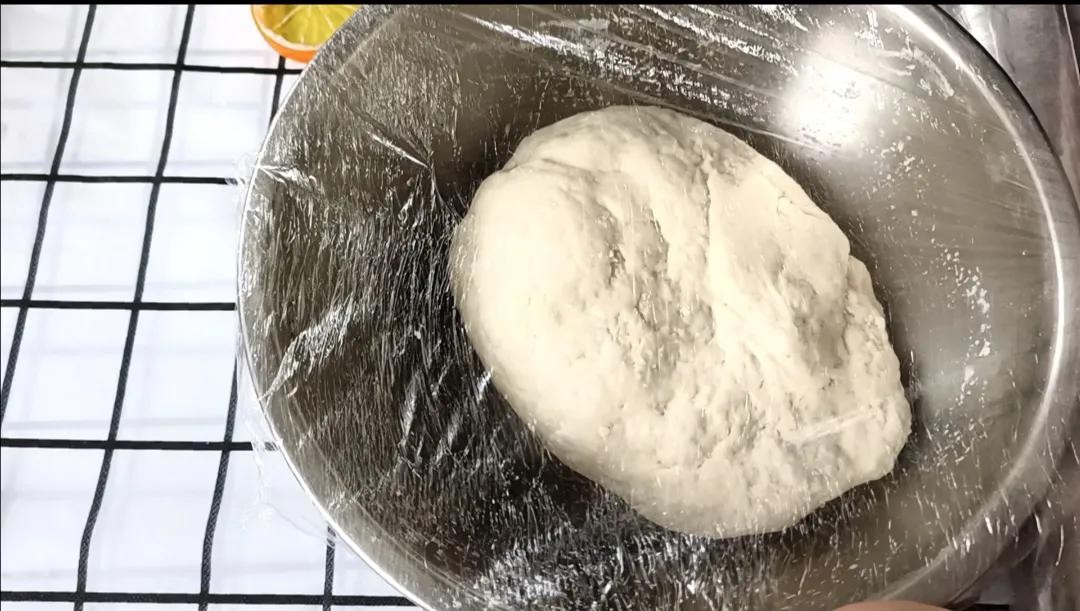 揉成团,盖上保鲜膜发酵一个小时(时间是根据气温而定的)