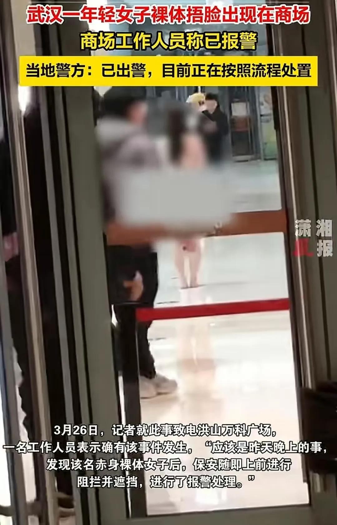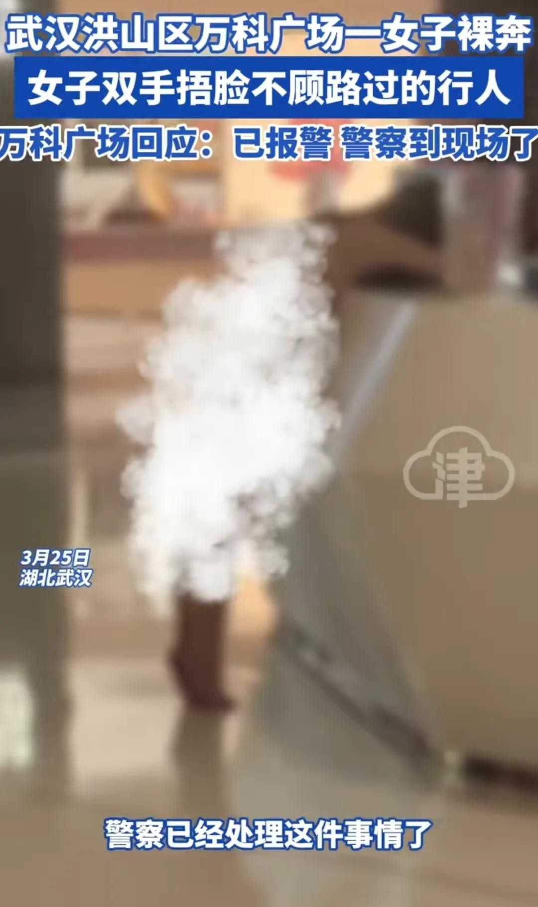 日前,坐标湖北武汉洪山区,一万达广场商场内,突然跑出一个裸奔的女子,女子双手捂脸,看上去是一个妙龄女子。