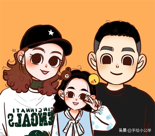 你的头像该换了,被网友赞赏的一家三口四口真人卡通手绘头像