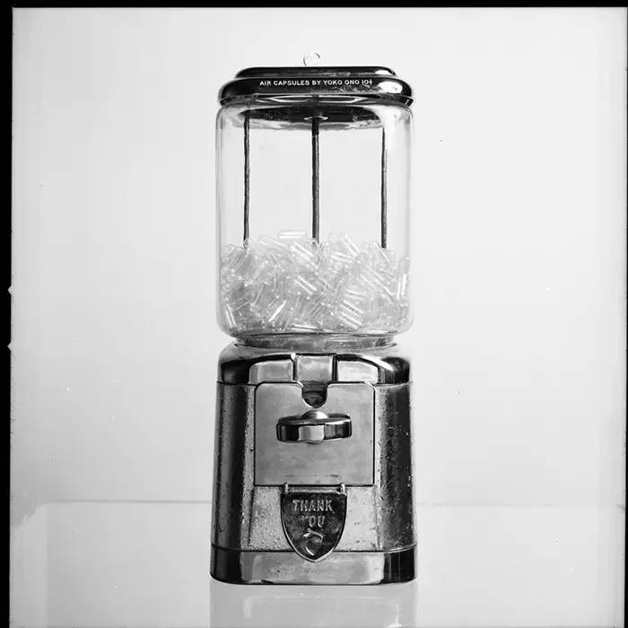 小野洋子 空气售贩机 1971/2015 四个改装版售贩机、塑料空气胶囊 尺寸不定 图片拍摄:伊恩·麦克米兰, 1971 图片由艺术家提供