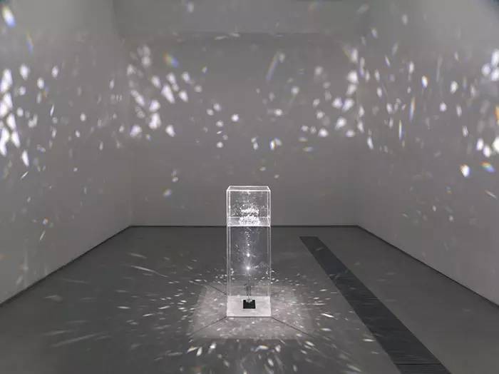 小野洋子 我们都是水 2006/2015 118个玻璃瓶,水,纸质标签 艺术家在德国比勒费尔德美术馆展览现场图片 图片拍摄:史蒂文·卡斯尼安斯基 图片由艺术家提供