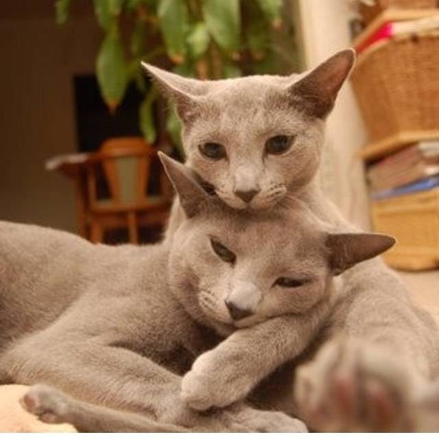 俄罗斯短毛跟英国短毛蓝猫有一样的毛色,这让很多人傻傻分不清楚。