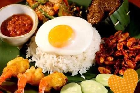 椰浆饭:单是看椰浆饭的外表,便知道它是极具马来风味的美食。用芭兰叶将以椰浆制成的米饭包裹起来,裹住的不仅是饭,还有食物本身的香味。在米饭内加入鸡肉以及红色的辣椒酱、绿色的黄瓜、金色的油炸小鱼干,酸、甜、辣、咸、香多味在嘴巴里中和,让人一口接一口停不下来。