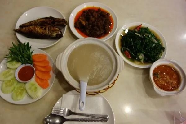 西米饭:是文莱极具特色的传统美食,很受当地人青睐。将椰子树芯磨成粉,加入热水搅拌,冷却后便形成浓稠剔透的样子,蘸上特制的调料或是搭配不同的蔬菜来食用。西米饭本身口感软糯,与以虾肉、榴莲、酸橘、辣椒等食材制成的酸甜酱料一起入口,味道令人难忘。
