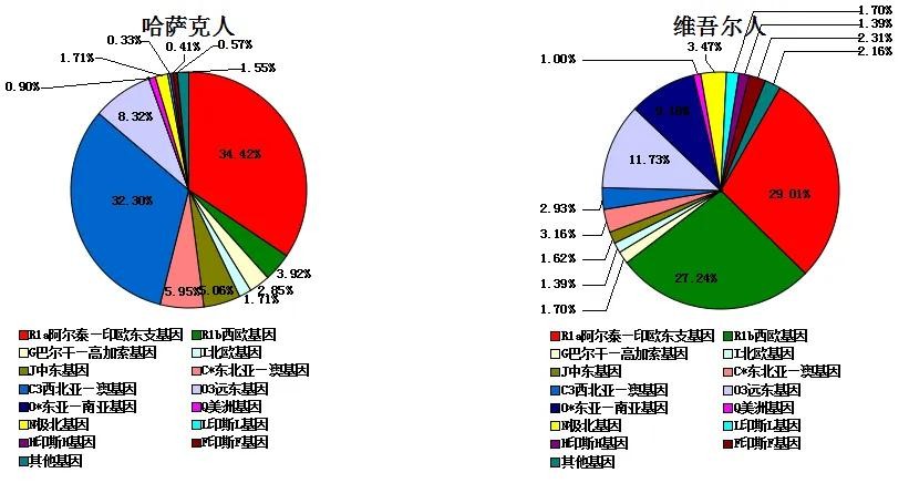 哈萨克斯坦人属于比较古老的突厥民族,R1a与C各占有相当的比例。哈萨克人中的霍加部落多是波斯、中东的传教士后代,其中东基因便是来自于他们。
