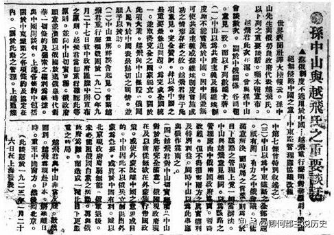 与之同时,孙中山主动联系了越飞,苏俄驻华全权代表越飞于1922年8月12日抵达北京,他来中国的目的就是与中国建交,当时苏俄是一个新生的国家,这个国家要寻求国际上的认可,必须要扩大外交力度。