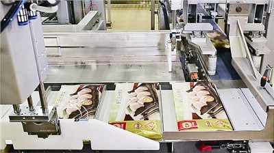 在方便餐加工车间记者看到,从原料存取、大米淘洗蒸、菜饭加料装盒、低温冷却、产品二次包装,一条完整的食品生产线“无缝衔接”,全程除零星巡检员和质检员外,几乎没有工人参与整个生产过程。尤其是前端原料存取、大米淘筛煮的环节,因全部由机械自动化操作、通过智能微电脑控制设备,车间始终处于“黑灯”作业状态。在一、二次包装生产环节,饺子、包子、香肠、面条、米饭套餐等食品随着机器快速运转,经过一系列流程,实现了由食材到烹调、由烹调到商品的完美蜕变,这个过程仅需短短几秒钟到几分钟时间。