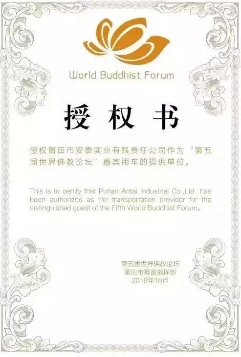 此次论坛由来自日本、韩国、俄罗斯、斯里兰卡、泰国、美国等世界各地约55个国家的佛教领袖、高僧大德、专家学者等代表参与。安泰实业提供100辆吉祥接待车,有幸与众位高僧结缘,从诸多备选车中脱颖而出被筛选为贵宾接待吉祥车。