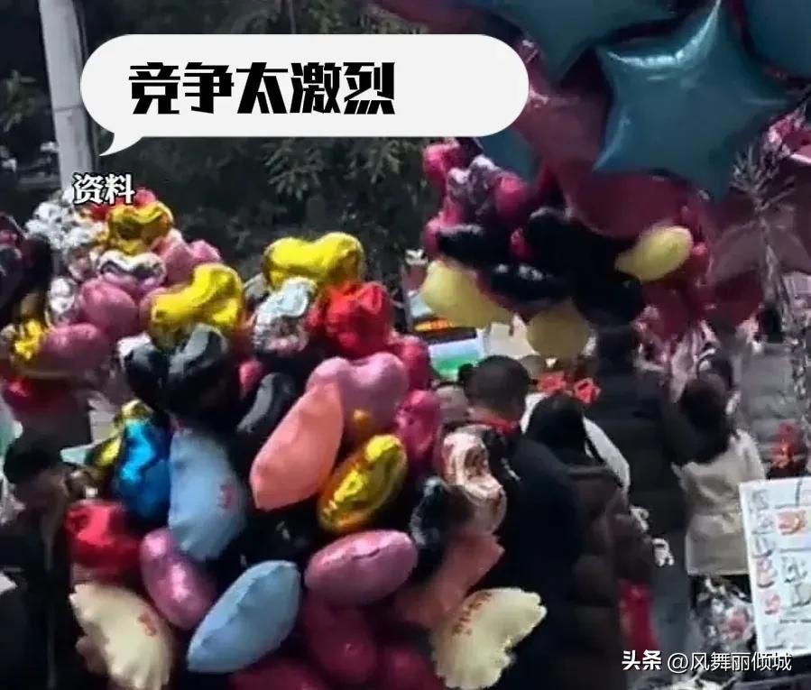 于是,他在寒风中抱着气球,挑了个“人流量最大”的地方开始营业。然而,现实总是比理想更寒冷。五颜六色的气球在冬夜的风中摇曳,却没能摇动路人的钱包。甚至连情侣们的目光都没分到几分。更扎心的是,有人还跑来问:“气球咋卖?哦,不买,就随便问问。”