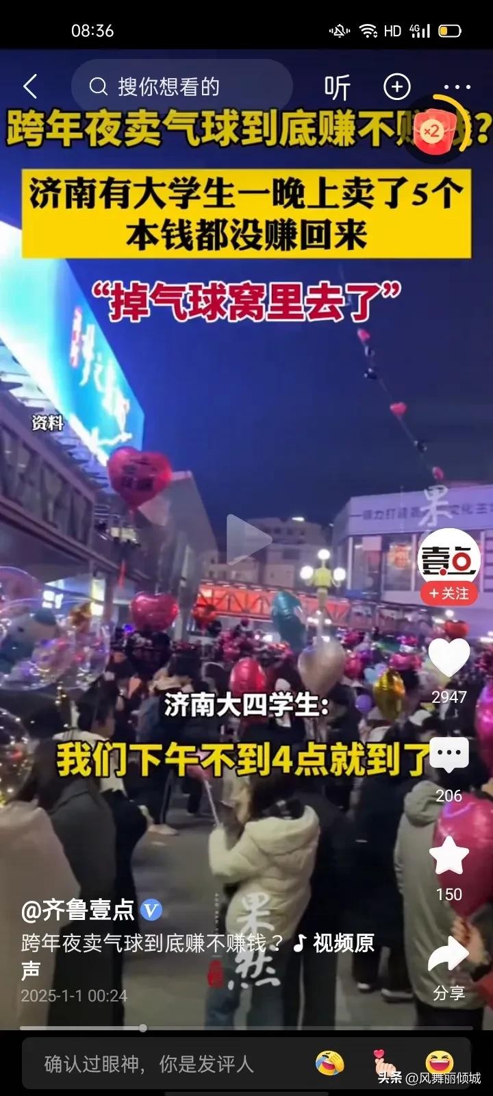 创业不简单,大学生跨年夜卖气球仅卖五个!你有更好的赚钱点子吗