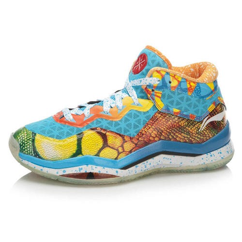 李宁韦德之道3轻质版"变色龙"男子篮球专业比赛鞋,在韦德之道全球球鞋设计大赛1000多幅的作品中,最终胜出的作品是以变色龙为灵感,代表着WADE在瞬息万变的赛场上多变的球风。
